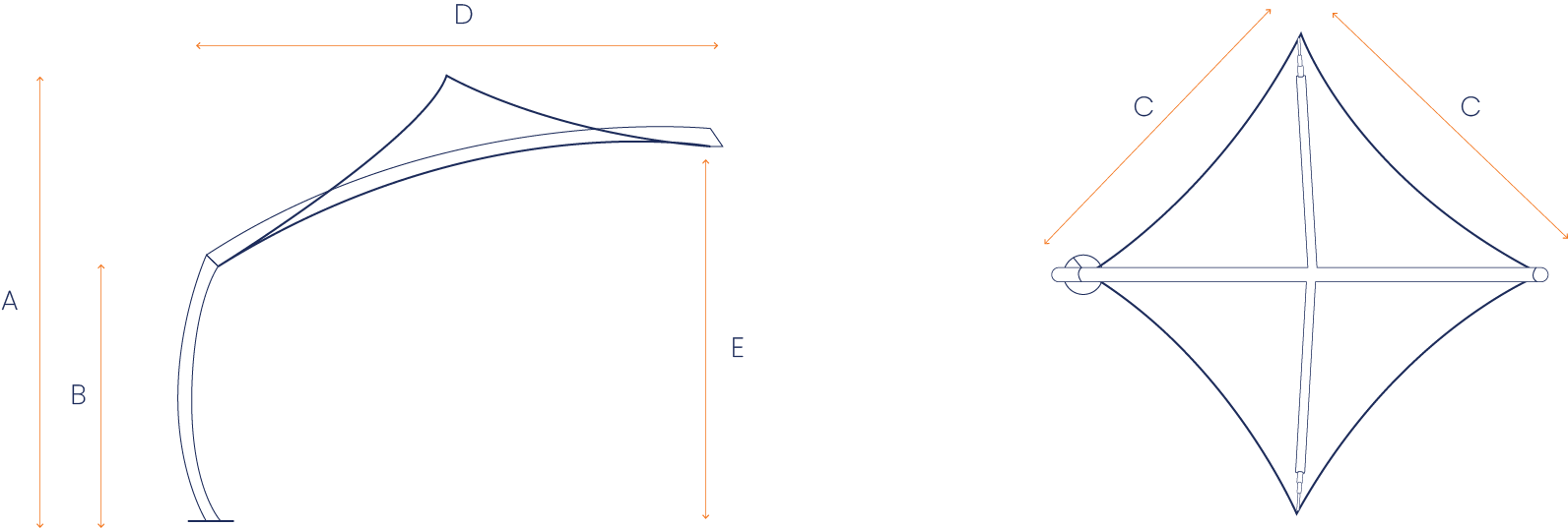 application the The Flexshade® Quad can be linked to form diverse configurations. These robust, wind rated tension membrane sails are custom