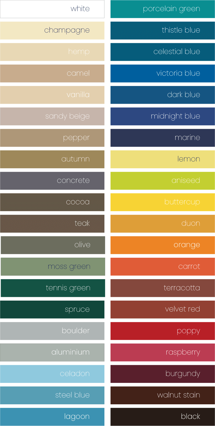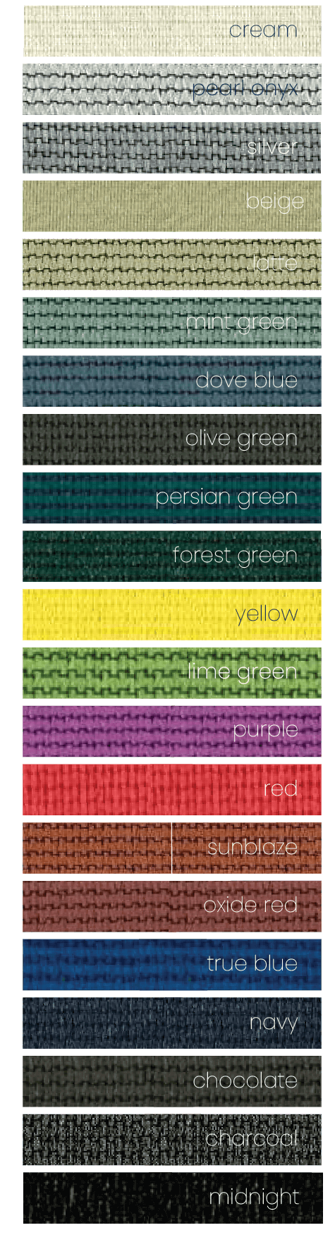 *Up to 15 year warranty depending on fabric choice, see Shade Cloth colour section below for more information. Warranty varies from 10-15 years.